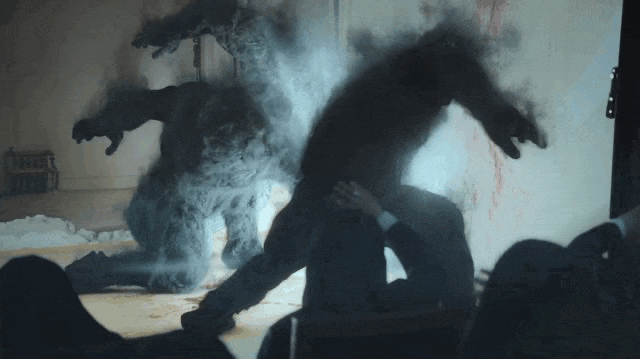 再之后,这三只大猩猩就会发出白光灼烧对方: