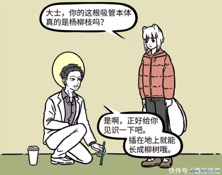 九月对不雅音手里的那根吸管有点趣味,是以念念知谈是不是杨柳枝。毕竟在神话神话中,不雅音手里是拿着玉净瓶和杨柳枝,仅仅咫尺的不雅音照旧将它们形成吸管和咖啡杯。不雅音告诉九月,吸管照实便是杨柳枝,咫尺刚好不错让她眼力一下。惟有插在地上,就会形成柳树。