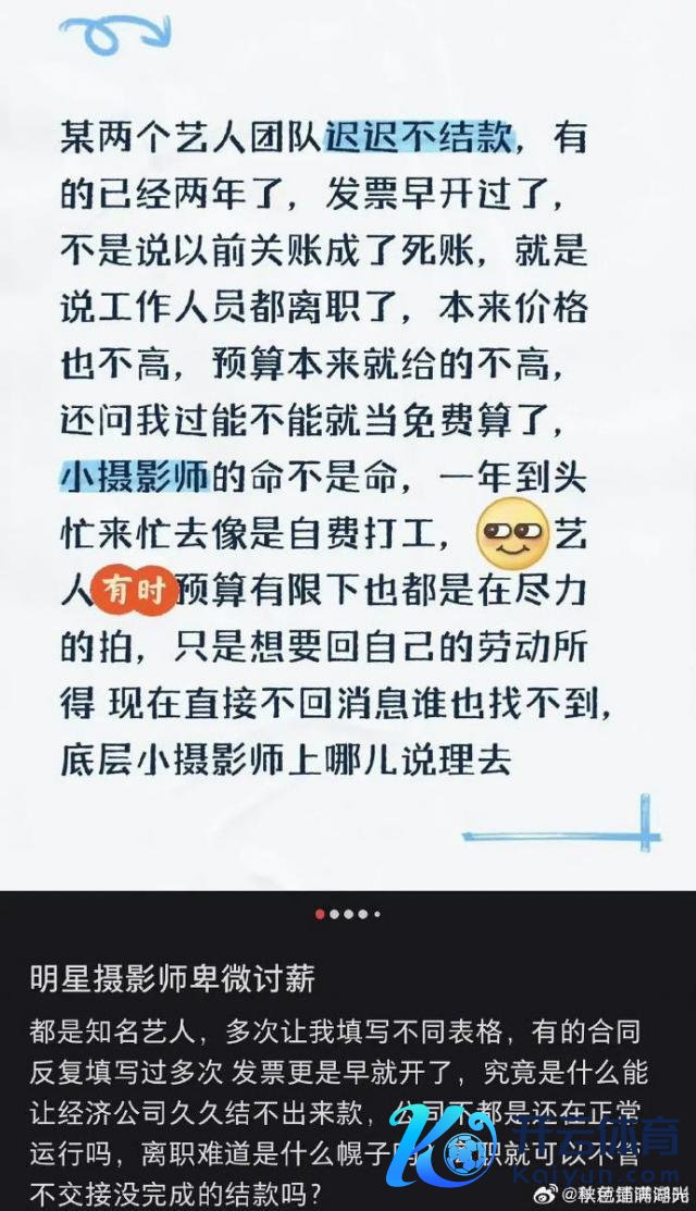截图的本色是:"小影相师的命不是命啊?" 这话里藏着的委曲,凡是混过奇迹行业的东谈主王人能品出三分。事儿提及来不复杂,他给两个艺东谈主团队拍过东西,按理说活儿干完发票开了,钱就该定期到账 —— 这是连路边修鞋师父王人懂的法令。可没思到,这钱一欠等于两年。