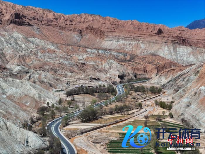 贵府图为航拍青海贵德丹霞地貌间的公路。 马铭言 摄